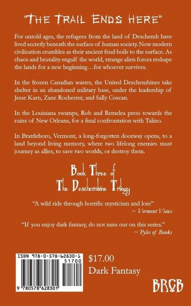 For untold ages, the refugees from the land of Deschemb have lived secretly beneath the surface of human society. Now modern civilization crumbles as their ancient feud boils to the surface. As chaos and brutality engulf the world, strange alien forces reshape the lands for a new beginning...for whoever survives. In the frozen Canadian wastes, the United Deschembines take shelter in an abandoned military base, under the leadership of Jesse Karn, Zane Rochester, and Sally Coscan. In the Louisiana swamps, Rob and Remelea press towards the ruins of New Orleans, for a final confrontation with Talino. In Brattleboro, Vermont, a long-forgotten doorway opens, to a land beyond living memory, where two lifelong enemies must journey as allies, to save two worlds, or destroy them.