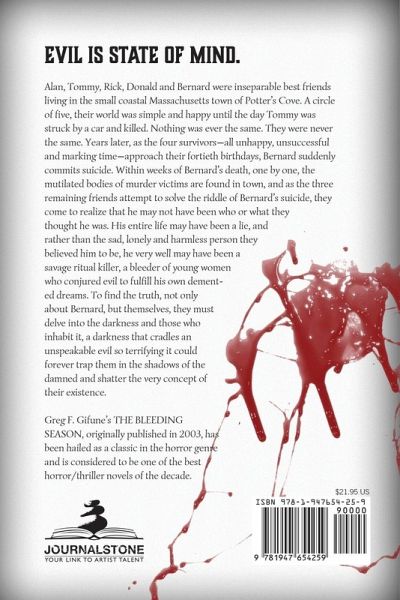 Evil is state of mind. Alan, Tommy, Rick, Donald and Bernard were inseparable best friends living in the small coastal Massachusetts town of Potter’s Cove. A circle of five, their world was simple and happy until the day Tommy was struck by a car and killed. Nothing was ever the same. They were never the same. Years later, as the four survivors—all unhappy, unsuccessful and marking time—approach their fortieth birthdays, Bernard suddenly commits suicide. Within weeks of Bernard’s death, one by one, the mutilated bodies of murder victims are found in town, and as the three remaining friends attempt to solve the riddle of Bernard’s suicide, they come to realize that he may not have been who or what they thought he was. His entire life may have been a lie, and rather than the sad, lonely and harmless person they believed him to be, he very well may have been a savage ritual killer, a bleeder of young women who conjured evil to fulfill his own demented dreams. To find the truth, not only about Bernard, but themselves, they must delve into the darkness and those who inhabit it, a darkness that cradles an unspeakable evil so terrifying it could forever trap them in the shadows of the damned and shatter the very concept of their existence. Greg F. Gifune’s THE BLEEDING SEASON, originally published in 2003, has been hailed as a classic in the horror genre and is considered to be one of the best horror/thriller novels of the decade.