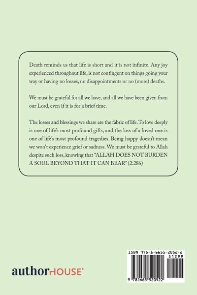 Death reminds us that life is short and it is not infinite. Any joy experienced throughout life, is not contingent on things going your way or having no losses, no disappointments or no (more) deaths. We must be grateful for all we have, and all we have been given from our Lord, even if it is for a brief time. The losses and blessings we share are the fabric of life. To love deeply is one of life's most profound gifts, and the loss of a loved one is one of life's most profound tragedies. Being happy doesn't mean we won't experience grief or sadness. We must be grateful to Allah despite such loss, knowing that "ALLAH DOES NOT BURDEN A SOUL BEYOND THAT IT CAN BEAR" (2:286)
