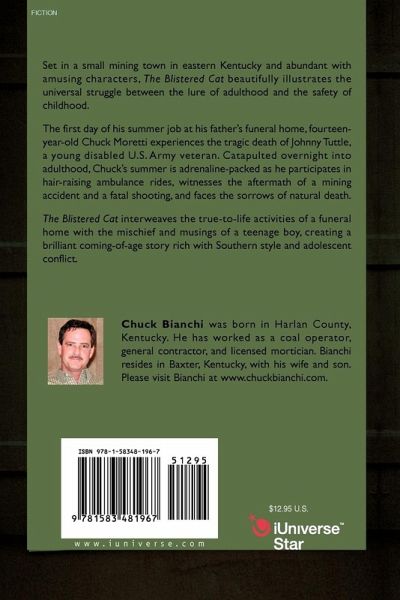 Set in a small mining town in eastern Kentucky and abundant with amusing characters, The Blistered Cat beautifully illustrates the universal struggle between the lure of adulthood and the safety of childhood. The first day of his summer job at his father's funeral home, fourteen-year-old Chuck Moretti experiences the tragic death of Johnny Tuttle, a young disabled U.S. Army veteran. Catapulted overnight into adulthood, Chuck's summer is adrenaline-packed as he participates in hair-raising ambulance rides, witnesses the aftermath of a mining accident and a fatal shooting, and faces the sorrows of natural death. The Blistered Cat interweaves the true-to-life activities of a funeral home with the mischief and musings of a teenage boy, creating a brilliant coming-of-age story rich with Southern style and adolescent conflict.