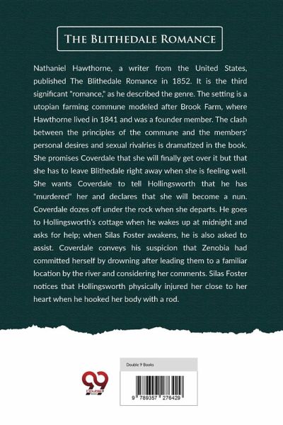 Nathaniel Hawthorne, a writer from the United States, published The Blithedale Romance in 1852. It is the third significant "romance," as he described the genre. The setting is a utopian farming commune modeled after Brook Farm, where Hawthorne lived in 1841 and was a founder member. The clash between the principles of the commune and the members' personal desires and sexual rivalries is dramatized in the book. She promises Coverdale that she will finally get over it but that she has to leave Blithedale right away when she is feeling well. She wants Coverdale to tell Hollingsworth that he has…mehr