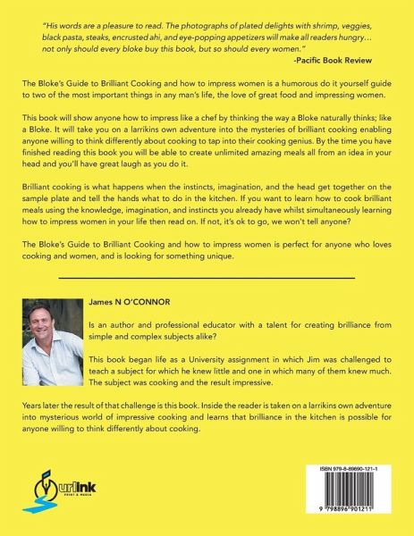 "His words are a pleasure to read. The photographs of plated delights with shrimp, veggies, black pasta, steaks, encrusted ahi, and eye-popping appetizers will make all readers hungry... not only should every bloke buy this book, but so should every women." -Pacific Book Review The Bloke's Guide to Brilliant Cooking and how to impress women is a humorous do it yourself guide to two of the most important things in any man's life, the love of great food and impressing women. This book will show anyone how to impress like a chef by thinking the way a Bloke naturally thinks; like a Bloke. It will take you on a larrikins own adventure into the mysteries of brilliant cooking enabling anyone willing to think differently about cooking to tap into their cooking genius. By the time you have finished reading this book you will be able to create unlimited amazing meals all from an idea in your head and you'll have great laugh as you do it. Brilliant cooking is what happens when the instincts, imagination, and the head get together on the sample plate and tell the hands what to do in the kitchen. If you want to learn how to cook brilliant meals using the knowledge, imagination, and instincts you already have whilst simultaneously learning how to impress women in your life then read on. If not, it's ok to go, we won't tell anyone? The Bloke's Guide to Brilliant Cooking and how to impress women is perfect for anyone who loves cooking and women, and is looking for something unique.