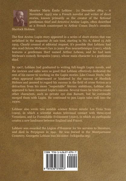 Maurice Marie Émile Leblanc (11 December 1864 - 6 November 1941) was a French novelist and writer of short stories, known primarily as the creator of the fictional gentleman thief and detective Arsène Lupin, often described as a French counterpart to Arthur Conan Doyle's creation Sherlock Holmes. The first Arsène Lupin story appeared in a series of short stories that was serialized in the magazine Je sais tout, starting in No. 6, dated 15 July 1905. Clearly created at editorial request, it's possible that Leblanc had also read Octave Mirbeau's Les 21 jours d'un neurasthénique (1901), which…mehr