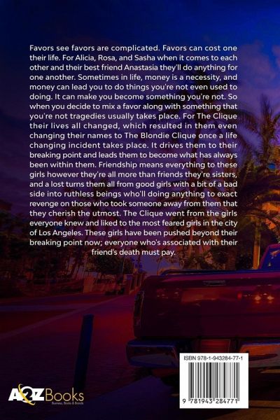 Favors see favors are complicated. Favors can cost one their life. For Alicia, Rosa, and Sasha when it comes to each other and their best friend Anastasia they'll do anything for one another. Sometimes in life, money is a necessity, and money can lead you to do things you're not even used to doing. It can make you become something you're not. So when you decide to mix a favor along with something that you're not tragedies usually takes place. For The Clique their lives all changed, which resulted in them even changing their names to The Blondie Clique once a life changing incident takes place. It drives them to their breaking point and leads them to become what has always been within them. Friendship means everything to these girls however they're all more than friends they're sisters, and a lost turns them all from good girls with a bit of a bad side into ruthless beings who'll doing anything to exact revenge on those who took someone away from them that they cherish the utmost. The Clique went from the girls everyone knew and liked to the most feared girls in the city of Los Angeles. These girls have been pushed beyond their breaking point now; everyone who's associated with their friend's death must pay.