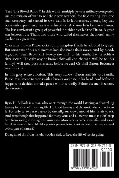 "I am The Blood Baron!" In this world, multiple private military companies use the tension of war to sell their new weapons for field testing. But one such company had started its own war. In its laboratories, a young boy was born with experimental nanites in his blood. And now he is known as Baron. The last survivor of a group of powerful individuals called the Titans. A great war between the Titans and those who called themselves the Hero's Army clashed in a great war. Years after the war Baron seeks out his long-lost family he adopted long ago. But remnants of his old enemies had also made their move. And by blood, rage, and metal Baron will destroy them all for his family. But he holds a dark secret. The only way he knows that will end the war. Will he tell his family? Will they push him away before he can? Or shall Baron. Become a true monster. In this gory science fiction. This story follows Baron and his lost family. Baron must come to terms with a known outcome in his head. And before it happens he decides to make peace with his family. Before the man becomes the monster