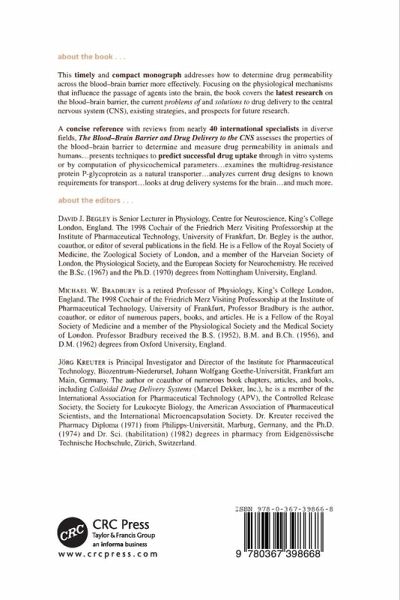 This timely and compact monograph addresses how to determine drug permeability across the blood-brain barrier more effectively. Focusing on the physiological mechanisms that influence the passage of agents into the brain, the book covers the latest research on the blood-brain barrier, the current problems of and solutions to drug delivery to the central nervous system (CNS), existing strategies, and prospects for future research. Avoid excessive in vivo experimentation and utilize timesaving in vitro techniques. A concise reference with reviews from nearly 40 international specialists in diverse fields, The Blood-Brain Barrier and Drug Delivery to the CNS 1. assesses the properties of the blood-brain barrier to determine and measure drug permeability in animals and humans 2. presents techniques to predict successful drug uptake through in vitro systems or by computation of physicochemical parameters 3. examines the multidrug resistance protein P-glycoprotein as a natural transporter 4. analyzes current drug designs to known requirements for transport 5. looks at drug delivery systems for the brain 6. and much more! Densely packed with over 800 literature references, drawings, photographs, x-rays, tables, and equations, The Blood-Brain Barrier and Drug Delivery to the CNS is a vital addition to the bookshelves of biochemists, pharmacists, clinical and research pharmacologists, neuroscientists and neurologists, and graduate and medical school students in these disciplines.