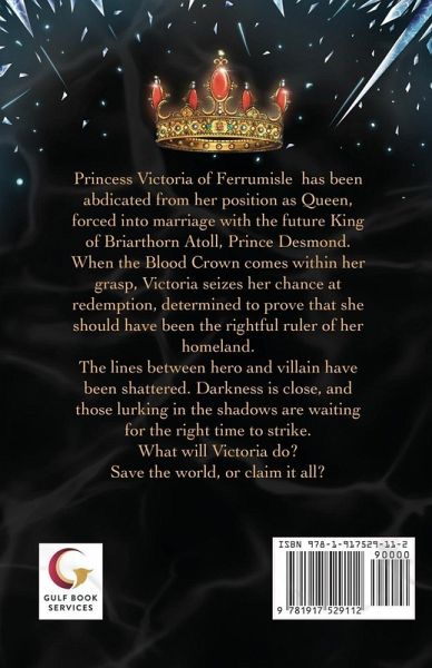 Princess Victoria of Ferrumisle has been abdicated from her position as Queen, forced into marriage with the future King of Briarthorn Atoll, Prince Desmond. When the Blood Crown comes within her grasp, Victoria seizes her chance at redemption, determined to prove that she should have been the rightful ruler of her home land . The lines between hero and villain have been shattered. Darkness is close, and those lurking in the shadows are waiting for the right time to strike. What will Victoria do?Save the world, or claim it all?