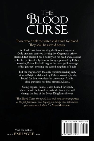 Those who drink the water shall thirst for blood. They shall be as wild beasts. A blood curse is consuming the Seven Kingdoms. Only one man can stop it-fugitive Osgaardan prince, Harkeld. But Harkeld has a bounty on his head and assassins at his heels. Guarded by Sentinel mages, pursued by Fithian assassins, Prince Harkeld begins the most perilous stage of his journey: entering the cursed kingdom of Sault. But the mages aren't the only travelers heading east. Princess Brigitta, abducted by Fithian assassins, is also bound for Sault-unless she can escape. And in close pursuit is her loyal armsman, Karel. Young orphan, Jaumé, is also headed for Sault, where he will be forced to make decisions that will change the fate of the Seven Kingdoms forever.