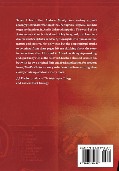 Pilgrim's Progress meets Mad Max in this post-apocalyptic road-trip. On the day he saves his fortress town from raiders, Chris Walker makes a devastating discovery that will overturn everything he believes and force him to leave the safety of his home. As he heads out into a shattered land, Chris must fight for his life and battle his own demons as well. Will he find a cure for the Tox that is spreading through his nervous system? Will he finally learn the terrifying truth of its origin? Can he put his trust in the mysterious Envoy and his promises? I love Bunyan's The Pilgrim's Progress and so when I heard that Andrew Moody was writing a post-apocalyptic transformation of the story, I just had to get my hands on it. And it did not disappoint! The world of the Autonomous Zone is vivid and richly imagined, its characters diverse and beautifully rendered, its insights into human nature mature and incisive. Not only that, but the deep spiritual truths to be mined from these pages left me thinking about the story for some time after I finished it. A book as thought-provoking and spiritually rich as the beloved Christian classic it is based on, but with its own original flair and fresh application for modern issues, The Blood Miles is a story to be devoured in one sitting, then closely contemplated over many more. J. J. Fischer, author of The Nightingale Trilogy and The Soul Mark Duology