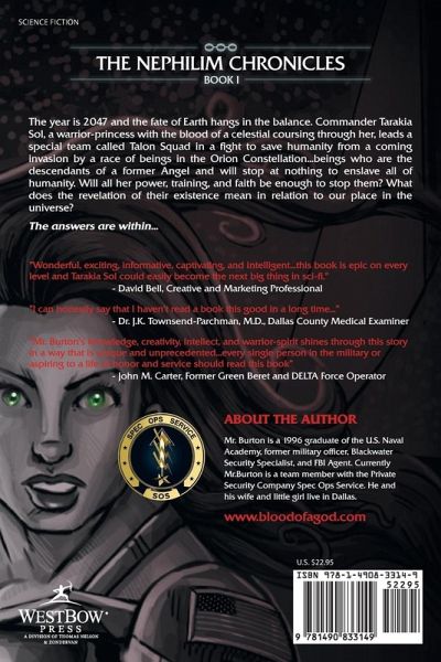 The year is 2047 and the fate of the Earth hangs in the balance. Commander Tarakia Sol, a warrior-princess with the blood of a celestial coursing through her, leads a special team called Talon Squad in a fight to save humanity from a coming invasion by a race of beings in the Orion Constellation...beings who are the descendants of a former Angel and will stop at nothing to enslave all of humanity. Will all her power, training, and faith be enough to stop them? What does the revelation of their existence mean in relation to our place in the universe? The answers are within...