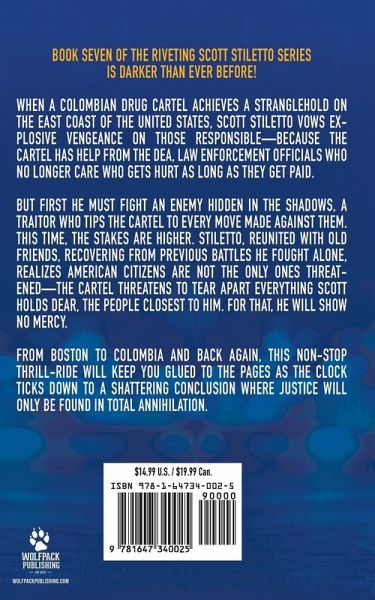 BOOK SEVEN OF THE RIVETING SCOTT STILETTO SERIES IS DARKER THAN EVER BEFORE! When a Colombian drug cartel achieves a stranglehold on the East Coast of the United States, Scott Stiletto vows explosive vengeance on those responsible--because the cartel has help from the DEA, law enforcement officials who no longer care who gets hurt as long as they get paid. But first he must fight an enemy hidden in the shadows, a traitor who tips the cartel to every move made against them. This time, the stakes are higher. Stiletto, reunited with old friends, recovering from previous battles he fought alone, realizes American citizens are not the only ones threatened--the cartel threatens to tear apart everything Scott holds dear, the people closest to him. For that, he will show no mercy. From Boston to Colombia and back again, this non-stop thrill-ride will keep you glued to the pages as the clock ticks down to a shattering conclusion where justice will only be found in total annihilation.