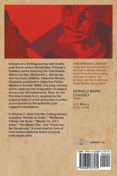 Embark on a thrilling journey with prolific pulp fiction author Donald Barr Chidsey's timeless series featuring the indomitable Miami cop Sgt. Wentworth L. McGarvey and his trusty sidekick, Detective Morton. Originally published in Detective Fiction Weekly in the late 1930s, this long-running series captured the imagination of readers across over 30 installments. Now, for the first time in book form, experience the gripping tales of crime and justice in order, accompanied by the authentic pulp magazine illustrations. In Volume 2, delve into five riveting stories, including "Murder to Order," "McGarvey Follows His Nose," "Murder for Art's Sake," "The Blood Trail," and "Fools Can Be Dangerous." A must-read for fans of hard-boiled detective fiction and pulp enthusiasts alike.