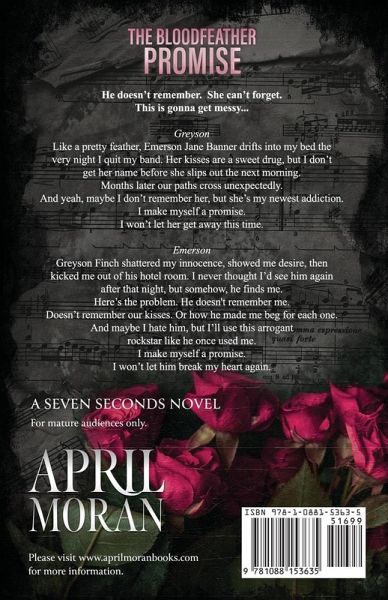 ~You will hate me. Despise me. Loathe me. Because I'm selfish. Indulgent. Arrogant. Yes. You will hate me. Until you don't. Can you find the sparkle beneath this rockstar's tarnish? Come on...I dare you.~ He doesn't remember. She can't forget. This is gonna get messy... Greyson Like a pretty feather, Emerson Jane Banner drifts into my bed the very night I quit my band. Her kisses are a sweet drug, but I don't get her name before she slips out the next morning. Months later our paths cross unexpectedly. And yeah, maybe I don't remember her, but she's my newest addiction. I make myself a promise. I won't let her get away this time. Emerson Greyson Finch shattered my innocence, showed me desire, then kicked me out of his hotel room. I never thought I'd see him again after that night, but somehow, he finds me. Here's the problem. He doesn't remember me. Doesn't remember our kisses. Or how he made me beg for each one. And maybe I hate him, but I'll use this arrogant rockstar like he once used me. I make myself a promise. I won't let him break my heart again.