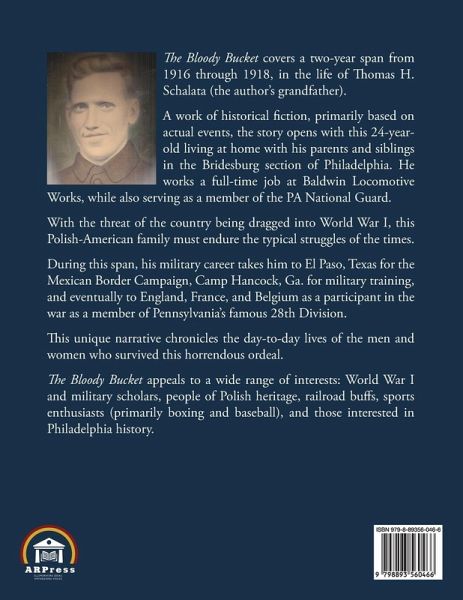 The Bloody Bucket covers a two-year span from 1916 through 1918, in the life of Thomas H. Schalata (the author's grandfather).A work of historical fiction, primarily based on actual events, the story opens with this 24-year-old living at home with his parents and siblings in the Bridesburg section of Philadelphia. He works a full-time job at Baldwin Locomotive Works, while also serving as a member of the PA National Guard.With the threat of the country being dragged into World War I, this Polish-American family must endure the typical struggles of the times.During this span, his military career takes him to El Paso, Texas for the Mexican Border Campaign, Camp Hancock, Ga. for military training, and eventually to England, France, and Belgium as a participant in the war as a member of Pennsylvania's famous 28th Division.This unique narrative chronicles the day-to-day lives of the men and women who survived this horrendous ordeal.The Bloody Bucket appeals to a wide range of interests: World War I and military scholars, people of Polish heritage, railroad buffs, sports enthusiasts (primarily boxing and baseball), and those interested in Philadelphia history.