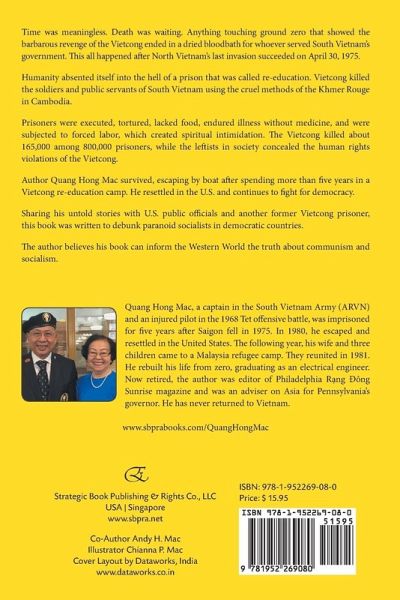 Time was meaningless. Death was waiting. Anything touching ground zero that showed the barbarous revenge of the Vietcong ended in a dried bloodbath for whoever served South Vietnam's government. This all happened after North Vietnam's last invasion succeeded on April 30, 1975. Humanity absented itself into the hell of a prison that was called re-education. Vietcong killed the soldiers and public servants of South Vietnam using the cruel methods of the Khmer Rouge in Cambodia. Prisoners were executed, tortured, lacked food, endured illness without medicine, and were subjected to forced labor, which created spiritual intimidation. The Vietcong killed about 165,000 among 800,000 prisoners, while the leftists in society concealed the human rights violations of the Vietcong. Author Quang Hong Mac survived, escaping by boat after spending more than five years in a Vietcong re-education camp. He resettled in the U.S. and continues to fight for democracy. Sharing his untold stories with U.S. public officials and another former Vietcong prisoner, this book was written to debunk paranoid socialists in democratic countries. The author believes his book can inform the Western World the truth about communism and socialism. About the Author : Quang Hong Mac, a captain in the South Vietnam Army (ARVN) and an injured pilot in the 1968 Tet offensive battle, was imprisoned for five years after Saigon fell in 1975. In 1980, he escaped and resettled in the United States. The following year, his wife and three children came to a Malaysia refugee camp. They reunited in 1981. He rebuilt his life from zero, graduating as an electrical engineer. Now retired, the author was editor of Philadelphia R¿ng ¿ông Sunrise magazine and was an adviser on Asia for Pennsylvania's governor. He has never returned to Vietnam.