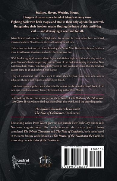 Stalkers. Slavers. Wraiths. Pirates. Dangers threaten a new band of friends at every turn. Fighting back with both magic and steel is their only option for survival. But gaining their freedom means finding the heart of this terrifying evil - and destroying it once and for all. Jakob Kestrel seeks to free the Highlands. To succeed, he must defeat both man and monster, Stalkers, Wraiths, and slavers all seeking to kill him. Talia strives to eliminate the pirates haunting the Sea of Mist. But before she can do that a more lethal hazard threatens, and only Davin can save her. With battles raging all around them, Bryen and Aislinn begin to realize that they need to go to Shadow's Reach, suspecting that the heart of the darkness seeking to smother New Caledonia lurks there. First, though, they need to help Jakob and ensure that the rebellion doesn't come to an end before it even begins. They all understand that if they want to attain their freedom from those who seek to subjugate them, it will require a reckoning in blood. Their fates bound together, learn what it holds in store for them in this fourth book of the new epic sword-and-sorcery fantasy by bestselling author Peter Wacht. The Tales of the Territories are part of the universe of The Realms of the Talent and the Curse. If you want to find out more about this world, read the preceding series: The Sylvan Chronicles (9-book series) The Tales of Caledonia (7-book series)