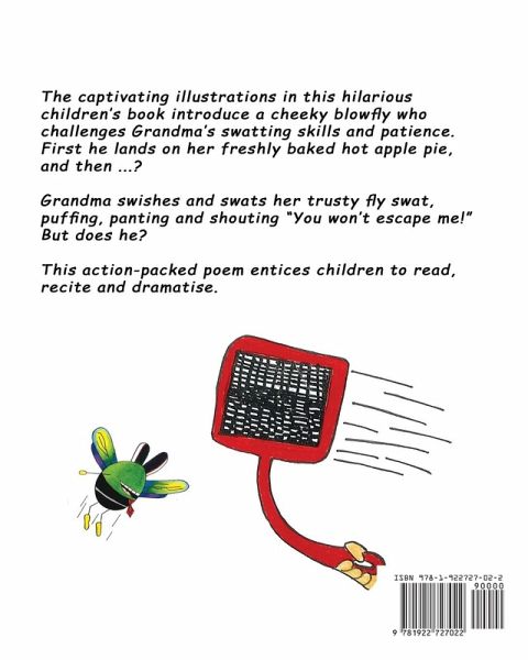 The captivating illustrations in this hilarious children's book introduce a cheeky blowfly who challenges Grandma's swatting skills and patience. First he lands on her freshly baked hot apple pie, and then ...? Grandma swishes and swats her trusty flyswat, puffing, panting and shouting "You won't escape me!" But does he? This action-packed poem entices children to read, recite and dramatise.