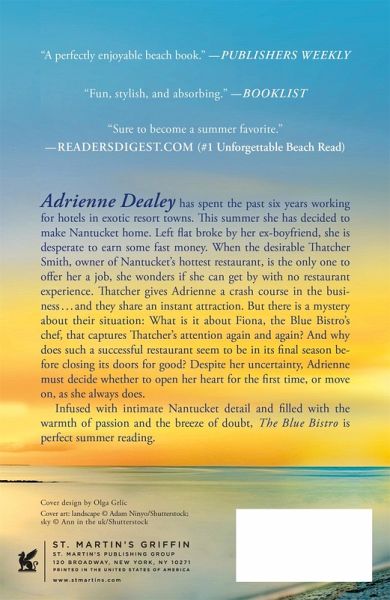 Elin Hilderbrand, author of the enchanting The Swan Song and The Five-Star Weekend, invites you to experience the perfect getaway with her sparkling novel, The Blue Bistro. Adrienne Dealey has spent the past six years working for hotels in exotic resort towns. This summer she has decided to make Nantucket home. Left flat broke by her ex-boyfriend, she is desperate to earn some fast money. When the desirable Thatcher Smith, owner of Nantucket's hottest restaurant, is the only one to offer her a job, she wonders if she can get by with no restaurant experience. Thatcher gives Adrienne a crash course in the business...and they share an instant attraction. But there is a mystery about their situation: What is it about Fiona, the Blue Bistro's chef, that captures Thatcher's attention again and again? And why does such a successful restaurant seem to be in its final season before closing its doors for good? Despite her uncertainty, Adrienne must decide whether to open her heart for the first time, or move on, as she always does. Infused with intimate Nantucket detail and filled with the warmth of passion and the breeze of doubt, The Blue Bistro is perfect summer reading.