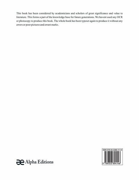 This book has been considered by academicians and scholars of great significance and value to literature. This forms a part of the knowledge base for future generations. So that the book is never forgotten we have represented this book in a print format as the same form as it was originally first published. Hence any marks or annotations seen are left intentionally to preserve its true nature.