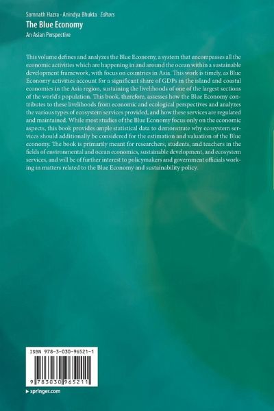 This volume defines and analyzes the Blue Economy, a system that encompasses all the economic activities which are happening in and around the ocean within a sustainable development framework, with focus on countries in Asia. This work is timely, as Blue Economy activities account for a significant share of GDPs in the island and coastal economies in the Asia region, sustaining the livelihoods of one of the largest sections of the world's population. This book, therefore, assesses how the Blue Economy contributes to these livelihoods from economic and ecological perspectives and analyzes the various types of ecosystem services provided, and how these services are regulated and maintained. While most studies of the Blue Economy focus only on the economic aspects, this book provides ample statistical data to demonstrate why ecosystem services should additionally be considered for the estimation and valuation of the Blue economy. The book is primarily meant for researchers, students, and teachers in the fields of environmental and ocean economics, sustainable development, and ecosystem services, and will be of further interest to policymakers and government officials working in matters related to the Blue Economy and sustainability policy.