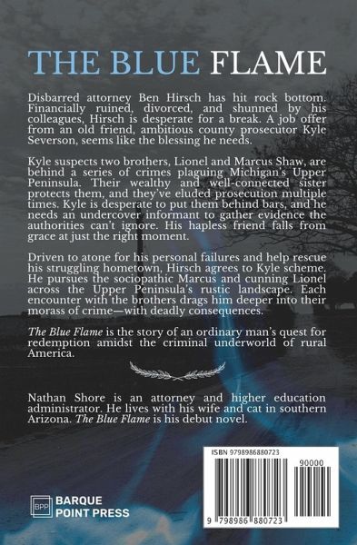 When disgraced attorney Ben Hirsch embarks on a mission to bring two criminal brothers to justice, will he pay the ultimate price? Lionel and Marcus Shaw are the scourge of Michigan's Upper Peninsula. The Shaws' reign of crime has left the U.P.'s residents in fear for their lives. Their wealthy and well-connected sister protects them, and they've eluded prosecution multiple times. Disbarred attorney Ben Hirsch has hit rock bottom. An old friend, ambitious county prosecutor Kyle Severson, is desperate to put the Shaw brothers behind bars, and he needs an undercover informant to gather evidence the authorities can't ignore. His hapless friend falls from grace at just the right moment. Armed with his Ojibwa ancestors' wisdom and his late father's .38 Special, Hirsch embarks on a mission to bring the Shaw brothers to justice and redeem his past misdeeds. Each encounter drags him deeper into their morass of crime. As a web of corruption and betrayal tightens around him, he discovers the price of redemption might cost him his life. The Blue Flame is the story of a desperate man's quest for justice amidst the criminal underworld of rural America.