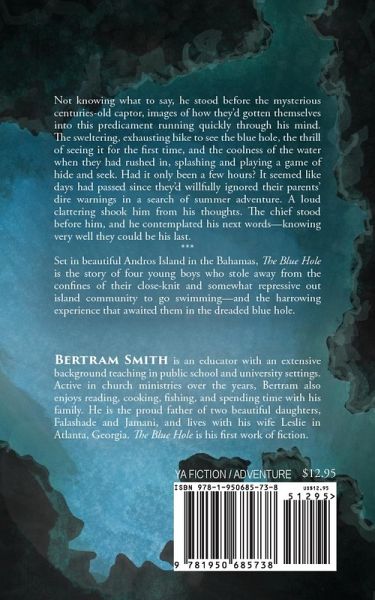 Not knowing what to say, he stood before the mysterious centuries-old captor, images of how they'd gotten themselves into this predicament running quickly through his mind. The sweltering, exhausting hike to see the blue hole, the thrill of seeing it for the first time, and the coolness of the water when they had rushed in, splashing and playing a game of hide and seek. Had it only been a few hours? It seemed like days had passed since they'd willfully ignored their parents' dire warnings in a search of summer adventure. A loud clattering shook him from his thoughts. The chief stood before him, and he contemplated his next words-knowing very well they could be his last. Set in beautiful Andros Island in the Bahamas, The Blue Hole is the story of four young boys who stole away from the confines of their close-knit and somewhat repressive out island community to go swimming-and the harrowing experience that awaited them in the dreaded blue hole.