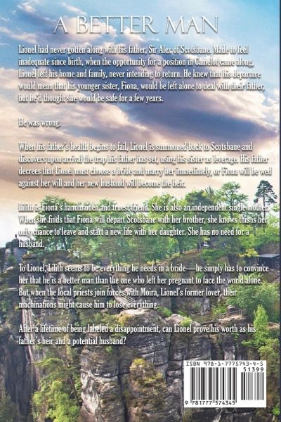 Lionel had never gotten along with his father, Sir Alex of Scotsbane. The man had spent all of Lionel's childhood making his son feel inadequate so as soon as Lionel could secure a position in Camelot he left, never intending to return. His departure meant that his younger sister, Fiona, would be alone with their father. He thought she would be safe for a few years. He was wrong. When his father's health began to fail a letter summoning him back to Scotsbane was delivered. Once home Lionel is told that he must choose a bride and get married or his father would force Fiona to marry and would leave the entire estate to her husband instead of Lionel. Lilith had wonderful daughter, a stubborn sense of pride and was fiercely independent. She did not want a husband, only a new start to life when Fiona left with her brother. She was everything that Lionel needed in a bride, he simply had to convince her that he was a better man than the one who loved her and left her pregnant to face the world alone. When the local priests join forces with Moira, Lionel's former lover, Lionel might lose everything if he cannot convince Lilith that he is a better man than he is accused of being. After a lifetime of being labeled a disappointment can Lionel finally measure up?