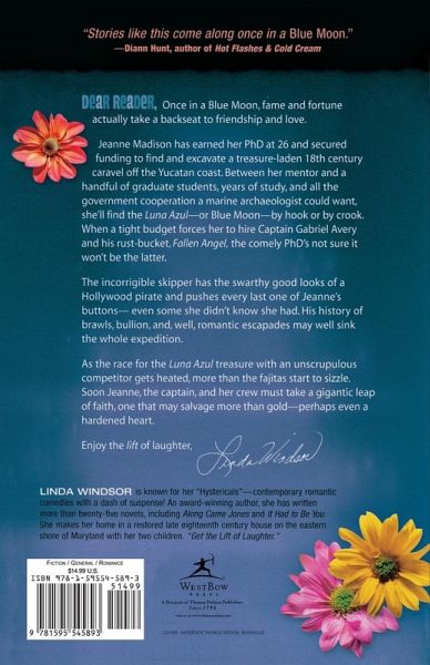 Once in a Blue Moon, fame and fortune actually take a backseat to friendship and love. Jeanne Madison has earned her PhD at 26 and secured funding to find and excavate a treasure-laden 18th century caravel off the Yucatan coast. Between her mentor and a handful of graduate students, years of study, and all the government cooperation a marine archaeologist could want, she'll find the Luna Azul--or Blue Moon--by hook or by crook. When a tight budget forces her to hire Captain Gabriel Avery and his rust-bucket, Fallen Angel , the comely PhD's not sure it won't be the latter. The incorrigible skipper has the swarthy good looks of a Hollywood pirate and pushes every last one of Jeanne's buttons--even some she didn't know she had. His history of brawls, bullion, and well, romantic escapades may well sink the whole expedition. As the race for the Luna Azul treasure with an unscrupulous competitor gets heated, more than the fajitas start to sizzle. Soon Jeanne, the captain, and her crew must take a gigantic leap of faith, one that may salvage more than gold--perhaps even a hardened heart.