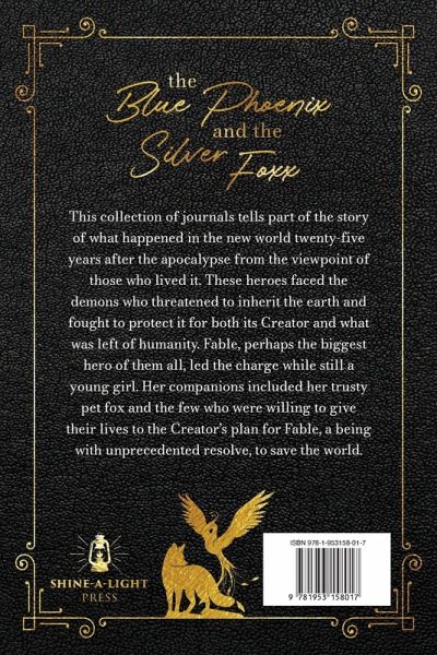 This collection of journals tells part of the story that happened in the new world, twenty-five years after the apocalypse, from the viewpoint of those who lived it. These heroes faced the demons who threatened to inherit the earth and fought to protect it for both its Creator and what was left of humanity. Fable, perhaps the biggest hero of them all, led the charge while still a young girl. Her companions included her trusty pet fox and the few who were willing to give their lives to the Creator's plan for Fable, a being with unprecedented resolve, to save the world.