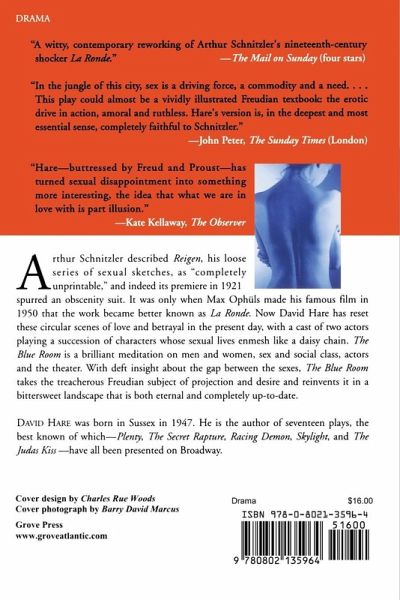 Arthur Schnitzler described Reigen, his loose series of sexual sketches, as "completely unprintable," and indeed its premiere in 1921 spurred an obscenity suit. It was only when Max Oph"ls made his famous film in 1950 that the work became better known as La Ronde. Now David Hare has reset these circular scenes of love and betrayal in the present day, with a cast of two actors playing a succession of characters whose sexual lives enmesh like a daisy chain. The Blue Room is a brilliant meditation on men and women, sex and social class, actors and the theater. With deft insight about the gap between the sexes, The Blue Room takes the treacherous Freudian subject of projection and desire and reinvents it in a bittersweet landscape that is both eternal and completely up-to-date.