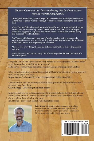 Thomas Conner is the classic underdog. But he doesn't know who he is competing against. Unsung and humiliated, Thomas begins his freshman year of college on the bench. Determined to prove everyone wrong, he's obsessed with becoming the next Larry Bird. When Thomas falls in love with Jenae, the beautiful and altruistic volleyball player, a whole new world opens up to him. She introduces him to Ray, a middle aged alcoholic struggling to stay sober and off the streets. Thomas tries to help, giving him purpose beyond basketball. But Thomas still dreams of greatness. When he punches a dirty opponent, he jeopardizes his career and his relationship with Jenae. Ray returns to the bottle and it feels like Thomas' life is spiraling out of control. About to lose everything, Thomas has to figure out who he is competing against and why. Pick up your copy of The Blue Team, Book 1 in the Thomas Conner Series, today.