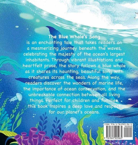 The Blue Whale's Song is a poetic and heartwarming children's book that invites readers to experience the wonders of the ocean through the gentle voice of the majestic blue whale. The story takes readers deep beneath the waves, following the largest creature on Earth as she sings her hauntingly beautiful song, a melody that echoes across the vast blue expanse and connects her to the life around her. Through lyrical verse, the book explores the blue whale's journey, her connection to other marine creatures, and the vibrant world of coral reefs and ocean birds. The story is a celebration of the…mehr