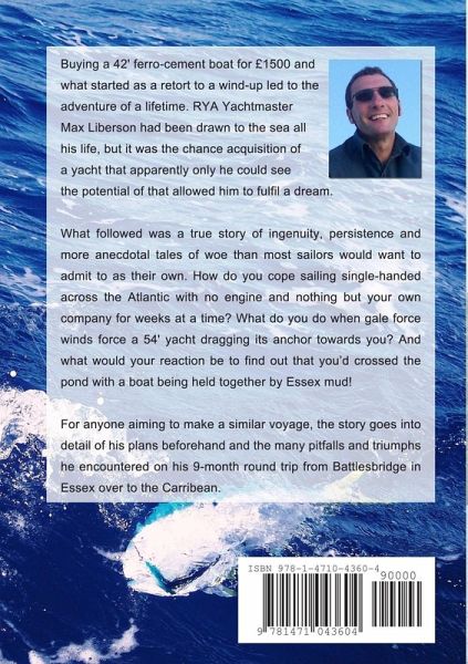 Buying a 42' ferro-cement boat for £1500 and what started as a retort to a wind-up led to the adventure of a lifetime. RYA Yachtmaster Max Liberson had been drawn to the sea all his life, but it was the chance acquisition of a yacht that apparently only he could see the potential of that allowed him to fulfil a dream. What followed was a true story of ingenuity, persistence and more anecdotal tales of woe than most sailors would want to admit to as their own. For anyone aiming to make a similar voyage, the story goes into detail of his plans beforehand and the many pitfalls and triumphs he encountered on his 9-month round trip from Battlesbridge in Essex over to the Carribean.