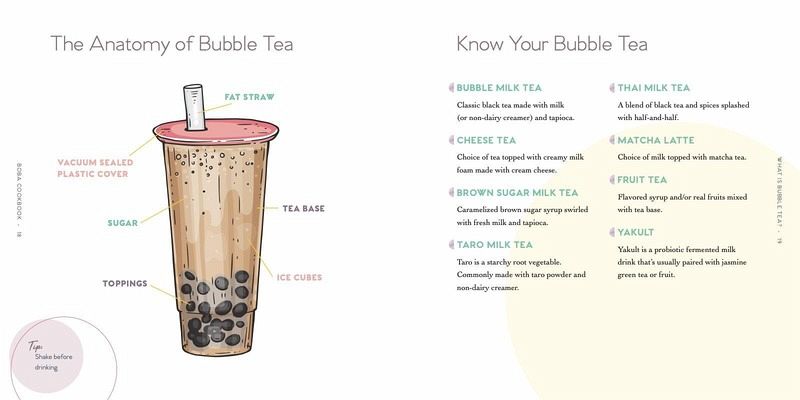 A bright, fun introduction to bubble tea, including 35 recipes and plenty of background about this trendy drink! From its origins in Taiwan, bubble tea, or boba, has developed legions of ardent fans across the globe. Often topped with chewy balls of tapioca or other toppings, this sweet treat is colorful, fun, and personalized. Now, with this boba book, bubble tea lovers can make it themselves using all-natural ingredients! Wendy Leung describes how she began her own bubble teashop, Hello Always Tea, and shares 35 favorite recipes--from the homemade tapioca balls she sells, to familiar blended teas (milk tea, taro, and fruit-based), to adventurous options (brown sugar; trendy milk and cheese foam tea; teas made with plant-based milks; and carbonated variations). She also includes a few snack recipes to round out your boba experience. Illustrated with bright and cheerful photography throughout (including photos from Wendy's travels in Taiwan), and packed with expertise about boba culture, The Boba Cookbook is a must-have boba recipe book for bubble tea enthusiasts. With 35 recipes featuring all-natural ingredients The Boba Cookbook is the perfect bubble tea book for boba fans ready to bring the phenomenon home, or for anyone looking for boba gifts for tea lovers.