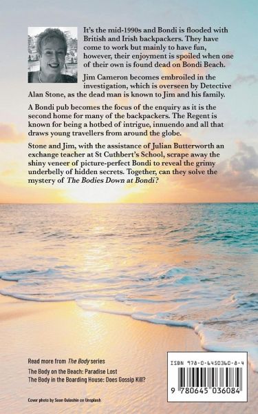 In the mid-1990s British and Irish backpackers invade Bondi. They have come for a good time and find work on building sites, in bars and strip joints. Many are regulars at the Regent Hotel, but their enjoyment is interrupted when one of their own, a gay Liverpudlian, is found dead down on Bondi Beach. As Jim Cameron knows the dead man he becomes involved in the investigation and once again joins forces with New Zealander, Detective Alan Stone. Jim engages the help of a young teacher who is on exchange from London and now teaching at St Cuthbert's. Julian Butterworth becomes a regular at the Regent hoping to find out why or how Mark Dunlop died. In the process Julian soon discovers the seedy side of Bondi and Kings Cross, the drug dealing, organised crime and in the process falls for the Irish stripper, Siobhan. With the help of regulars at the Regent, Julian, Jim and Stone embark on solving the mystery of the bodies down at Bondi.