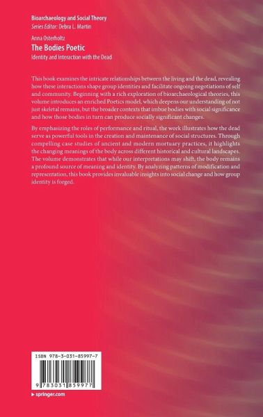 This book examines the intricate relationships between the living and the dead, revealing how these interactions shape group identities and facilitate ongoing negotiations of self and community. Beginning with a rich exploration of bioarchaeological theories, this volume introduces an enriched Poetics model, which deepens our understanding of not just skeletal remains, but the broader contexts that imbue bodies with social significance and how those bodies in turn can produce socially significant changes.
