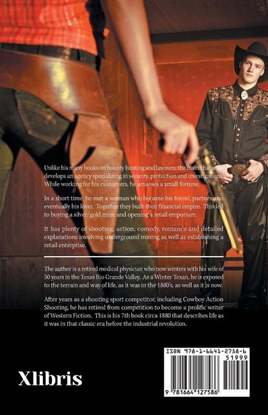Unlike his many books on bounty hunting and lawmen, the main character develops an agency specializing in security, protection and investigations. While working for his customers, he amasses a small fortune. In a short time, he met a woman who became his friend, partner and eventually his lover. Together they built their financial empire. This led to buying a silver/gold mine and opening a retail emporium. It has plenty of shooting, action, comedy, romance and detailed explanations involving underground mining as well as establishing a retail enterprise.