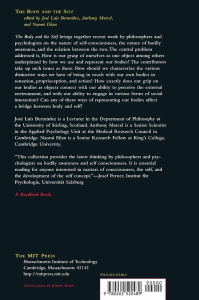 The Body and the Self brings together recent work by philosophers and psychologists on the nature of self-consciousness, the nature of bodily awareness, and the relation between the two. The central problem addressed is How is our grasp of ourselves as one object among others underpinned by the ways in which we use and represent our bodies? The contributors take up such issues as how should we characterize the various distinctive ways we have of being in touch with our own bodies in sensation, proprioception, and action? How exactly does our grip on our bodies as objects connect with our ability to perceive the external environment, and with our ability to engage in various forms of social interaction? Can any of these ways of representing our bodies affect a bridge between body and self?