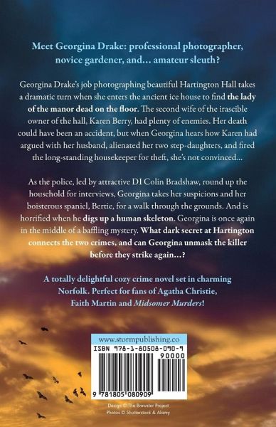 Meet Georgina Drake: professional photographer, novice gardener, and... amateur sleuth? Georgina Drake's job photographing beautiful Hartington Hall takes a dramatic turn when she enters the ancient ice house to find the lady of the manor dead on the floor. The second wife of the irascible owner of the hall, Karen Berry had plenty of enemies. Her death could have been an accident, but when Georgina hears how Karen had argued with her husband, alienated her two step-daughters, and fired the long-standing housekeeper for theft, she's not convinced... As the police, led by attractive DI Colin Bradshaw, round up the household for interviews, Georgina takes her suspicions and her boisterous spaniel, Bertie, for a walk through the grounds. And is horrified when he digs up a human skeleton. Georgina is once again in the middle of a baffling mystery. What dark secret at Hartington connects the two crimes, and can Georgina unmask the killer before they strike again...? A totally delightful cozy crime novel set in charming Norfolk. Perfect for fans of Agatha Christie, Faith Martin and Midsomer Murders.
