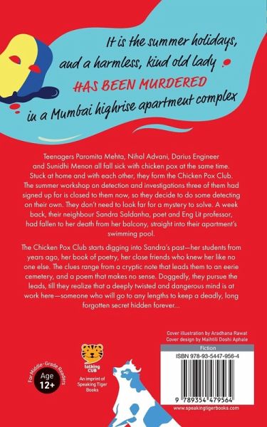 Teenagers Paromita Mehta, Nihal Advani, Darius Engineer and Sunidhi Menon all fall sick with chicken pox at the same time. Stuck at home and with each other, they form the Chicken Pox Club. The summer workshop on detection and investigations the three of them had signed up for is closed to them now, so they decide to do some detecting on their own. They don't need to look far for a mystery to solve. A week back, their neighbour, Sandra Saldanha, poet and Eng Lit professor, had fallen to her death from her balcony, straight into their apartment's swimming pool. The Chicken Pox Club starts digging into Sandra's past-her students from years ago, her book of poetry, her close friends who knew her like no one else. The clues range from a cryptic note that leads them to an eerie cemetery, and a poem that makes no sense. Doggedly, they pursue the leads, till they realize that a deeply twisted and dangerous mind is at work here-someone who will go to any lengths to keep a deadly, long forgotten secret hidden forever...