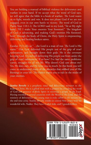 You are holding a manual of biblical violence for deliverance and warfare in your hand. If we accept what the word of God says, we will agree that the bible is a book of warfare. The Lord wants us to fight, wrestle and win. It does not please God if we are not engaged, even in our own battle to victory. The word of God in Psalm Your 110:1-2, The LORD said to my Lord, "Sit at My right hand, Till I make Your enemies Your footstool." The kingdom of God is advancing, and making God's enemies His footstool, how? Through the body of Christ, the Holy Spirit is empowering, delivering and healing broken saints.Exodus 15:3 tells us "...the Lord is a man of war. The Lord is His name." Our God delivered His people out of the grip of cruel taskmasters, and brought down their gods. He is the covenant keeping God. Is Lord still delivering His people out from under the grip of cruel taskmasters? If so how? I've had the same problems, curses, struggles for all my life. Why doesn't God care about me? Yes, He does care, and He loves you so much. In this book you will come to understand many of the obstacles that robbed you of His blessings in your life. The Father wants you to rule in the midst of your enemies. Stanley Beverly is a prophetic voice and deliverance minister to the body of Christ. He is a gifted man with a passion for revealing the word of God and presence of Holy Spirit in restoring a people to the Lord. Having traveled to several countries with the Word of the Lord, and the ministry of deliverance, this young man is truly called to the nations for the end time army. Stanley Beverly resides in central New Jersey with his wonderful wife, Nadier. They have 4 adult kids, and 5 grandchildren.