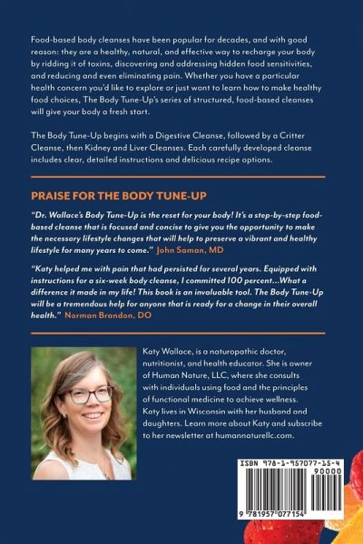 Food-based body cleanses have been popular for decades, and with good reason; they are a healthy, natural, and effective way to recharge your body by ridding it of toxins, discovering and addressing hidden food sensitivities, and reducing and even eliminating pain. Whether you have a particular health concern you'd like to explore or just want to learn how to make healthy food choices, The Body Tune-Up's series of structured, food-based cleanses will give your body a fresh start. The Body Tune-Up begins with a Digestive Cleanse, followed by a Critter Cleanse, then Kidney and Liver Cleanses. Each carefully developed cleanse includes clear, detailed instructions and delicious recipe options.