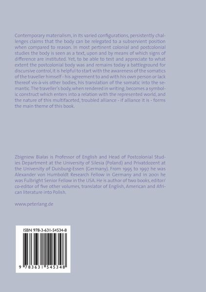 Contemporary materialism, in its varied configurations, persistently challenges claims that the body can be relegated to a subservient position when compared to reason. In most pertinent colonial and postcolonial studies the body is seen as a text, upon and by means of which signs of difference are instituted. Yet, to be able to test and appreciate to what extent the postcolonial body was and remains today a battleground for discursive control, it is helpful to start with the awareness of the somatics of the traveller himself - his agreement to and with his own person or lack thereof vis-à-vis other bodies, his translation of the somatic into the semantic. The traveller's body, when rendered in writing, becomes a symbolic construct which enters into a relation with the represented world, and the nature of this multifaceted, troubled alliance - if alliance it is - forms the main theme of this book.