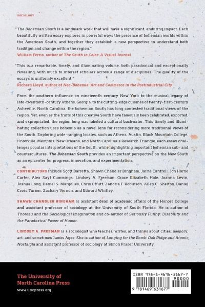 From the southern influence on nineteenth-century New York to the musical legacy of late-twentieth-century Athens, Georgia, to the cutting-edge cuisines of twenty-first-century Asheville, North Carolina, the bohemian South has long contested traditional views of the region. Yet, even as the fruits of this creative South have famously been celebrated, exported, and expropriated, the region long was labeled a cultural backwater. This timely and illuminating collection uses bohemia as a novel lens for reconsidering more traditional views of the South. Exploring wide-ranging locales, such as Athens, Austin, Black Mountain College, Knoxville, Memphis, New Orleans, and North Carolina’s Research Triangle, each essay challenges popular interpretations of the South, while highlighting important bohemian sub- and countercultures. The Bohemian South provides an important perspective in the New South as an epicenter for progress, innovation, and experimentation. Contributors include Scott Barretta, Shawn Chandler Bingham, Jaime Cantrell, Jon Horne Carter, Alex Sayf Cummings, Lindsey A. Freeman, Grace E. Hale, Joanna Levin, Joshua Long, Daniel S. Margolies, Chris Offutt, Zandria F. Robinson, Allen Shelton, Daniel Cross Turner, Zackary Vernon, and Edward Whitley.