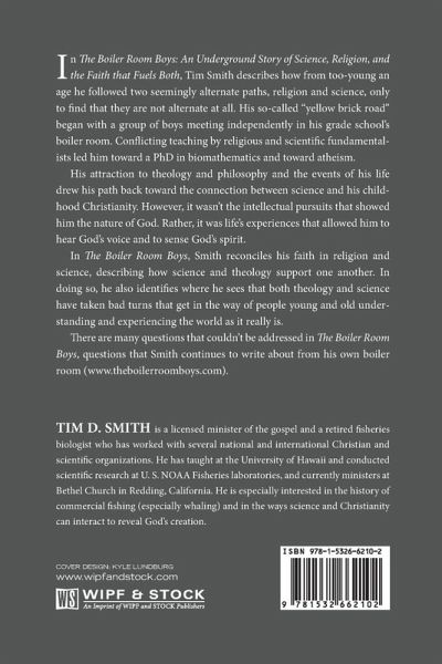 In The Boiler Room Boys: An Underground Story of Science, Religion, and the Faith that Fuels Both, Tim Smith describes how from too-young an age he followed two seemingly alternate paths, religion and science, only to find that they are not alternate at all. His so-called ""yellow brick road"" began with a group of boys meeting independently in his grade school's boiler room. Conflicting teaching by religious and scientific fundamentalists led him toward a PhD in biomathematics and toward atheism. His attraction to theology and philosophy and the events of his life drew his path back toward the connection between science and his childhood Christianity. However, it wasn't the intellectual pursuits that showed him the nature of God. Rather, it was life's experiences that allowed him to hear God's voice and to sense God's spirit. In The Boiler Room Boys, Smith reconciles his faith in religion and science, describing how science and theology support one another. In doing so, he also identifies where he sees that both theology and science have taken bad turns that get in the way of people young and old understanding and experiencing the world as it really is. There are many questions that couldn't be addressed in The Boiler Room Boys, questions that Smith continues to write about from his own boiler room (www.theboilerroomboys.com).