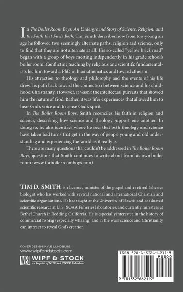 In The Boiler Room Boys: An Underground Story of Science, Religion, and the Faith that Fuels Both, Tim Smith describes how from too-young an age he followed two seemingly alternate paths, religion and science, only to find that they are not alternate at all. His so-called ""yellow brick road"" began with a group of boys meeting independently in his grade school's boiler room. Conflicting teaching by religious and scientific fundamentalists led him toward a PhD in biomathematics and toward atheism. His attraction to theology and philosophy and the events of his life drew his path back toward the connection between science and his childhood Christianity. However, it wasn't the intellectual pursuits that showed him the nature of God. Rather, it was life's experiences that allowed him to hear God's voice and to sense God's spirit. In The Boiler Room Boys, Smith reconciles his faith in religion and science, describing how science and theology support one another. In doing so, he also identifies where he sees that both theology and science have taken bad turns that get in the way of people young and old understanding and experiencing the world as it really is. There are many questions that couldn't be addressed in The Boiler Room Boys, questions that Smith continues to write about from his own boiler room (www.theboilerroomboys.com).