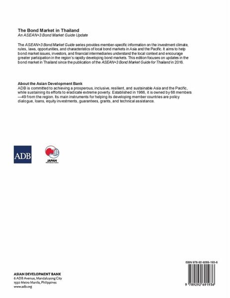 This publication provides updates on the bond market in Thailand since 2016. The ASEAN+3 Bond Market Guide series provides information on the investment climate, rules, laws, opportunities, and characteristics of bond markets in Asia and the Pacific. It aims to help bond market issuers, investors, and financial intermediaries understand the local context and encourage greater participation in the region's rapidly developing bond markets. This edition updates the ASEAN+3 Bond Market Guide 2016: Thailand.