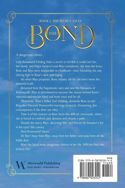 An Impossible Choice... Lady Rosamund Fielding hides a secret so terrible it could ruin her, her family, and Major General Lord Rhys Lansdowne, the man she loves. Rose and Rhys were inseparable in childhood-their friendship the one shining light in Rose's dark upbringing. Yet when Rhys proposes, Rose refuses, for he can never know her shameful truth. Returned from the Napoleonic wars and now the Marquess of Ravenscroft, Rhys is determined to uncover the reason behind Rose's rejection and win her hand and heart once and for all. Meanwhile, Rose's father, Earl Fielding, demands Rose accept Brigadier Viscount Pennworth's marriage proposal, threatening dire consequences if she does not obey. Time is of the essence as Rose faces this difficult crossroads, where she is forced to confront past demons and choose a path. Should she marry Rhys, deceiving him, and forever be branded a liar in his eyes? She cannot. Wed Pennworth? Never. Or flee? Away from Rhys, away from her father, and away from all she holds dear. Rose has faced many dangerous choices in her life. Will this final one destroy her?