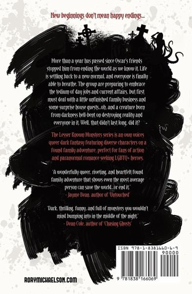 New beginnings don't mean happy endings... More than a year has passed since Oscar's friends stopped him from ending the world as we know it. Life is settling back to a new normal, and everyone is finally able to take a breath. The group are preparing to embrace the tedium of day jobs and current affairs, but must first deal with a little unfinished family business and some surprise house guests...oh, and a creature born from darkness hell-bent on destroying reality and everyone in it. Well, that didn't last long, did it? The Lesser Known Monsters series is a queer dark fantasy featuring diverse characters on a found family adventure, perfect for fans of adventure, horror, and paranormal romance seeking LGBTQ+ heroes.