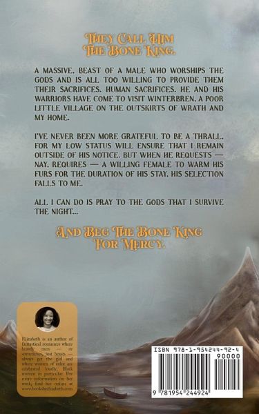 They call him the bone king. A massive, beast of a male who worships the gods and is all too willing to provide them their sacrifices. Human sacrifices. He and his warriors have come to visit Winterbren, a poor little village on the outskirts of Wrath and my home. I've never been more grateful to be a thrall, for my low status will ensure that I remain outside of his notice. But when he requests - nay, requires - a willing female to warm his furs for the duration of his stay, his selection falls to me. All I can do is pray to the gods that I survive the night... And beg the bone king for mercy. This book contains dark themes, including a Black woman in the position of thrall, graphic depictions of torture, non-con, and discussions of early childhood abuse. A full list of warnings can be found on my website.